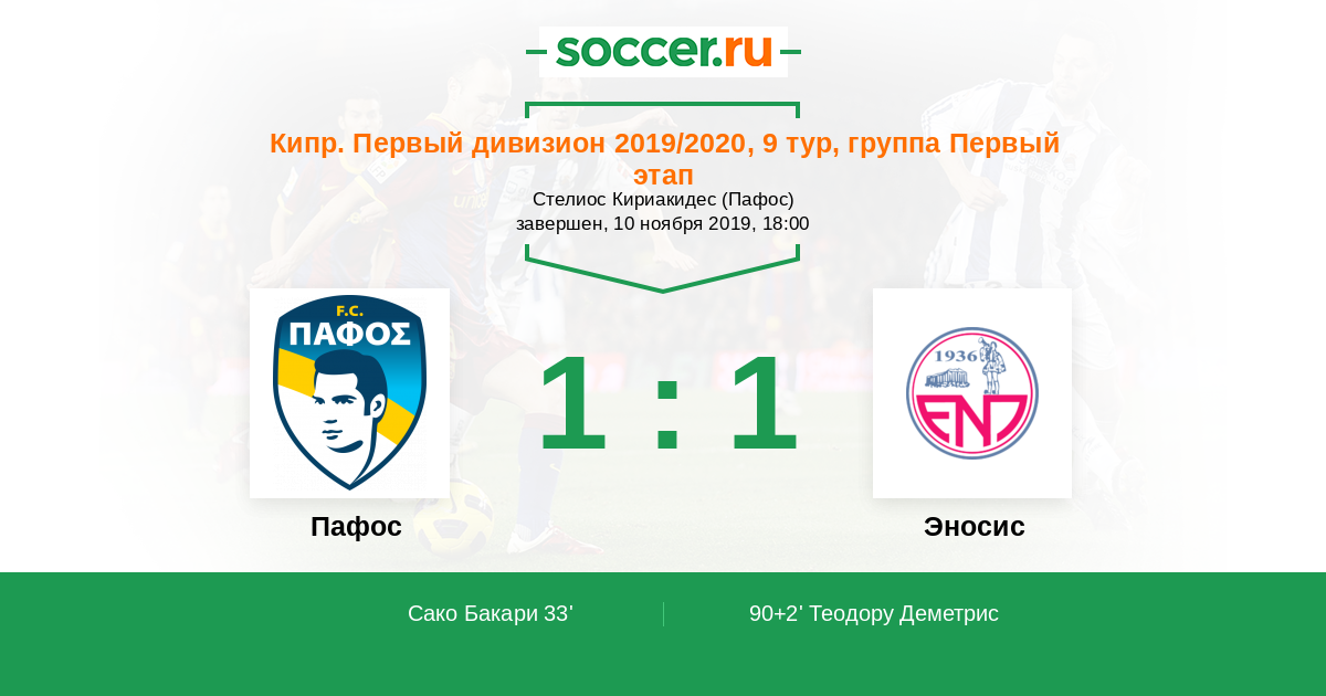 Пафос - Эносис: обзор матча 10 ноября 2019