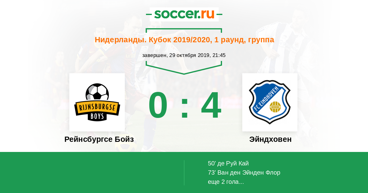 Рейнсбургсе Бойз - Эйндховен: обзор матча 29 октября 2019