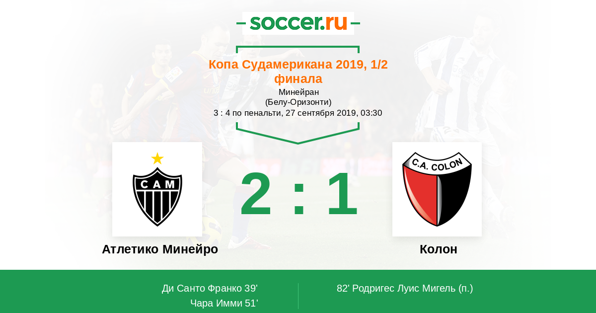 Атлетико Минейро - Колон: обзор матча 27 сентября 2019