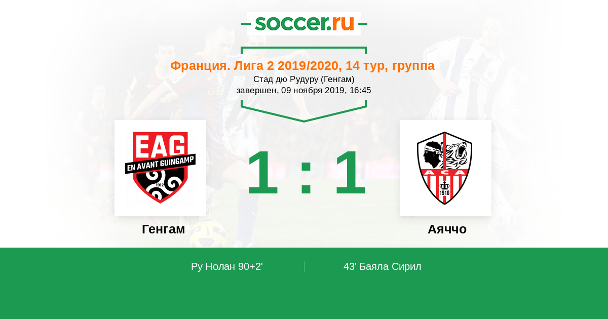 Генгам - Аяччо: обзор матча 9 ноября 2019