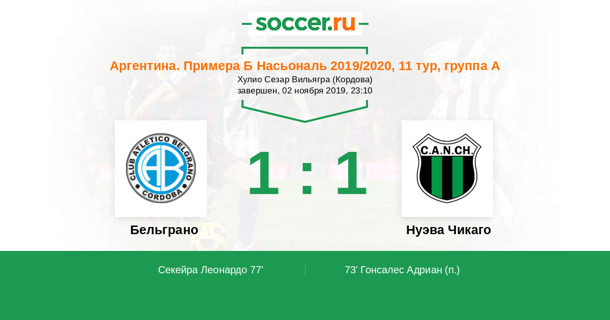 Бельграно - Нуэва Чикаго: обзор матча 2 ноября 2019