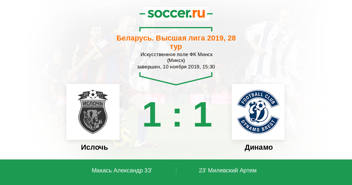 Ислочь - Динамо: обзор матча 10 ноября 2019
