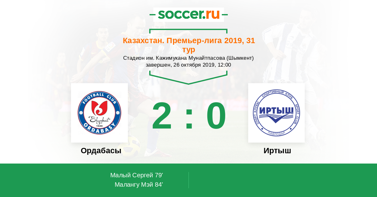 Ордабасы - Иртыш: обзор матча 26 октября 2019