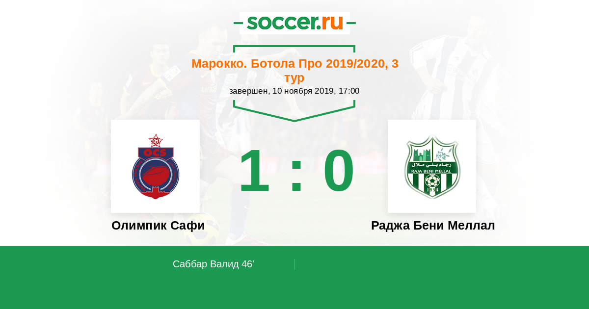 Олимпик Сафи - Раджа Бени Меллал: обзор матча 10 ноября 2019