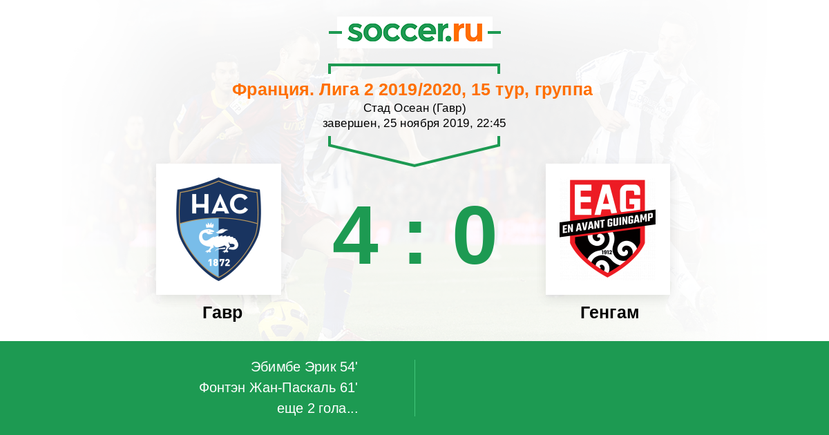 Гавр - Генгам: обзор матча 25 ноября 2019