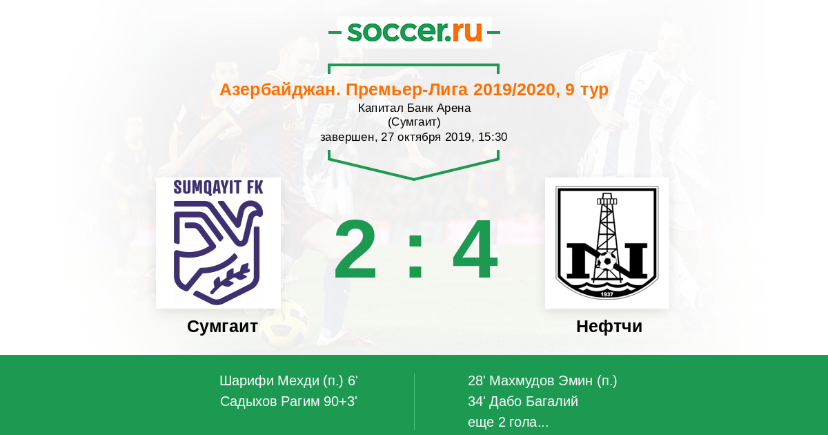 Сумгаит - Нефтчи: обзор матча 27 октября 2019