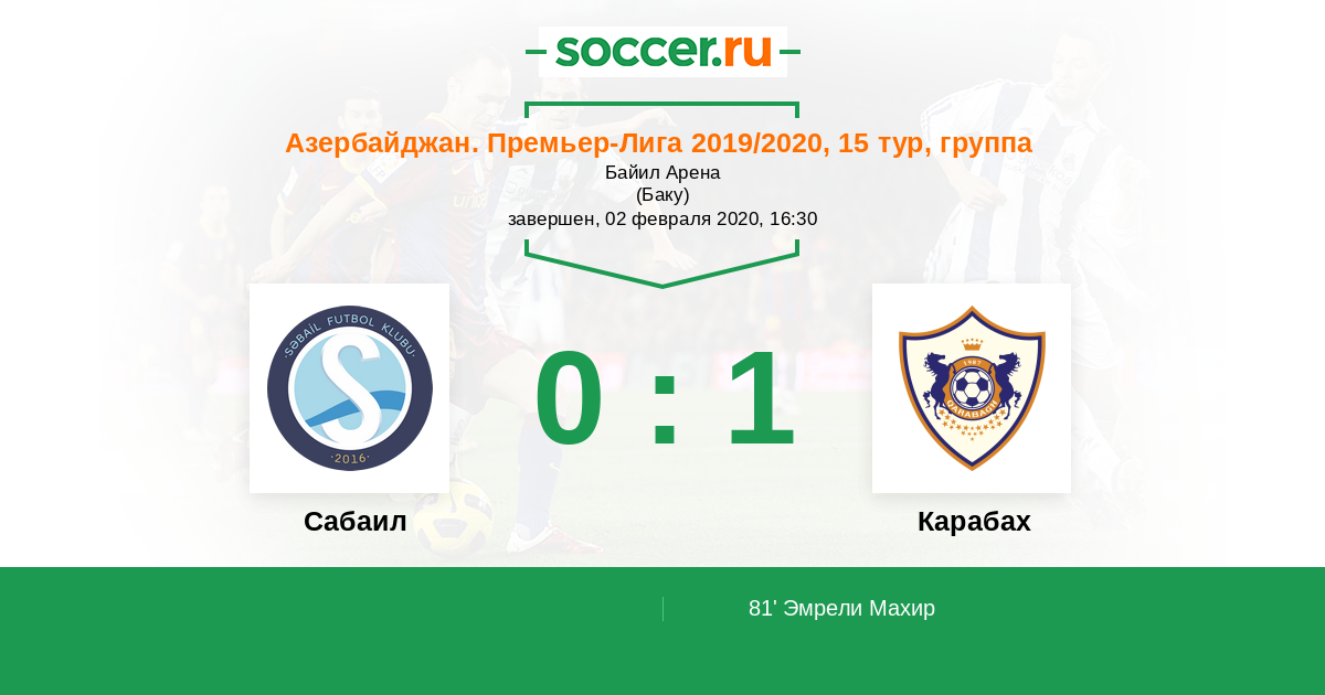 Сабаил - Карабах: обзор матча 2 февраля 2020