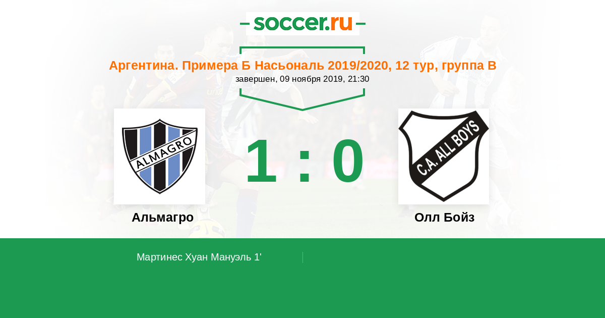Альмагро - Олл Бойз: обзор матча 9 ноября 2019