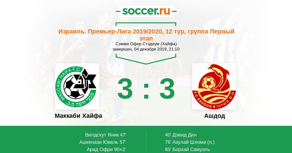 Маккаби Хайфа - Ашдод: обзор матча 4 декабря 2019
