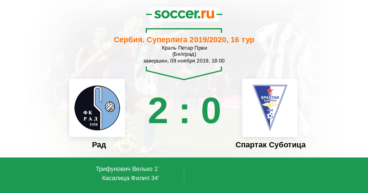 Рад - Спартак Суботица: обзор матча 9 ноября 2019