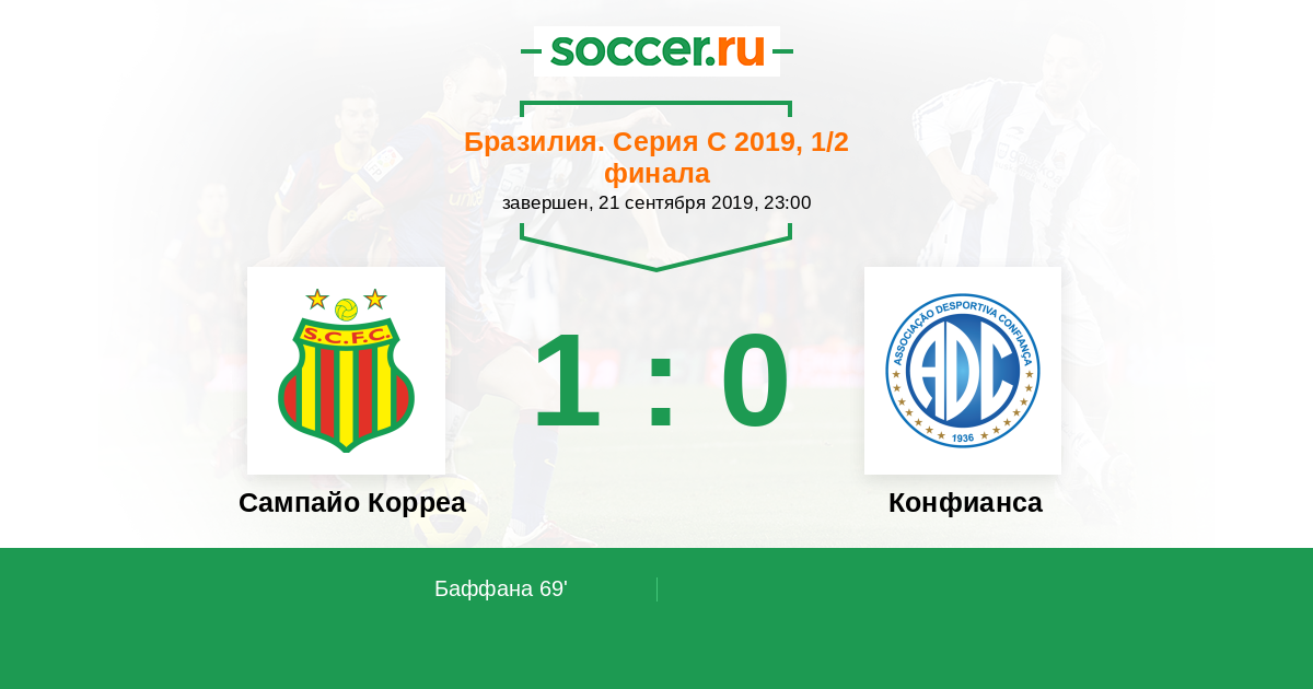 Сампайо Корреа - Конфианса: обзор матча 21 сентября 2019