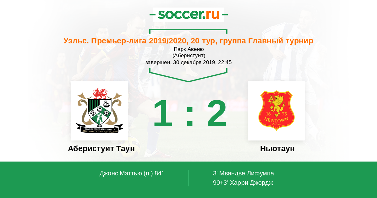 Аберистуит Таун - Ньютаун: обзор матча 30 декабря 2019
