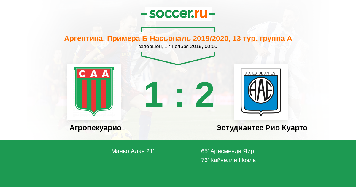 Агропекуарио - Эстудиантес Рио Куарто: обзор матча 17 ноября 2019