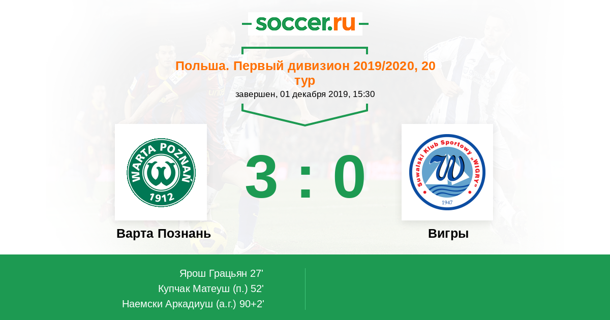 Варта Познань - Вигры: обзор матча 1 декабря 2019