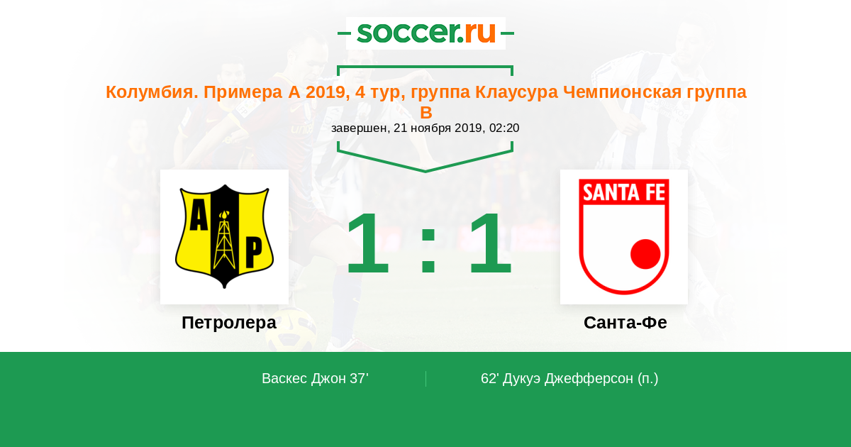 Петролера - Санта-Фе: обзор матча 21 ноября 2019