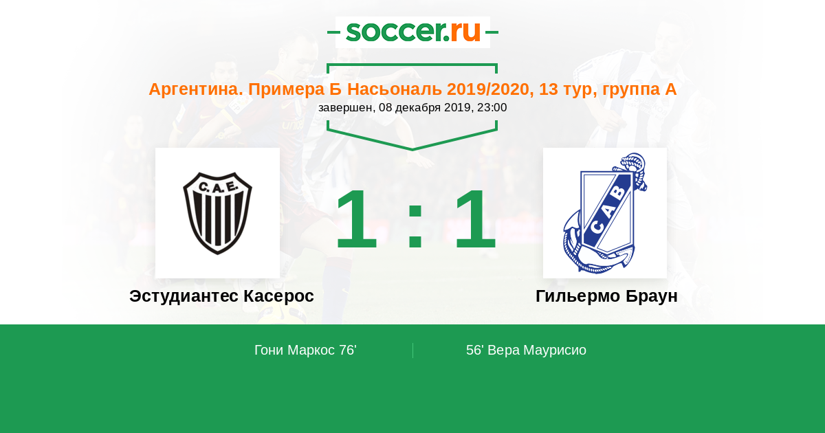 Эстудиантес Касерос - Гильермо Браун: обзор матча 8 декабря 2019