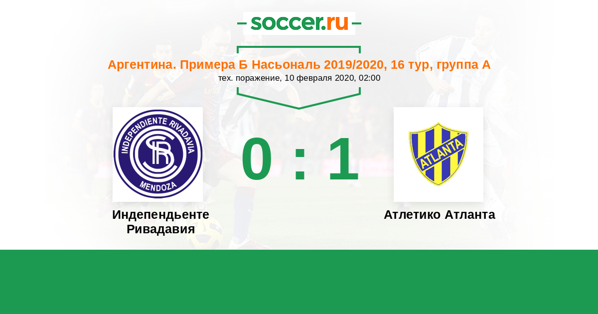 Индепендьенте Ривадавия - Атлетико Атланта: обзор матча 10 февраля 2020