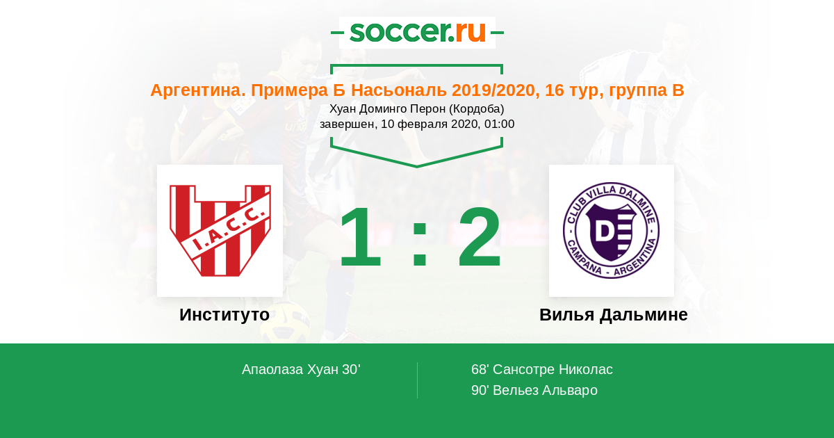Институто - Вилья Дальмине: обзор матча 10 февраля 2020