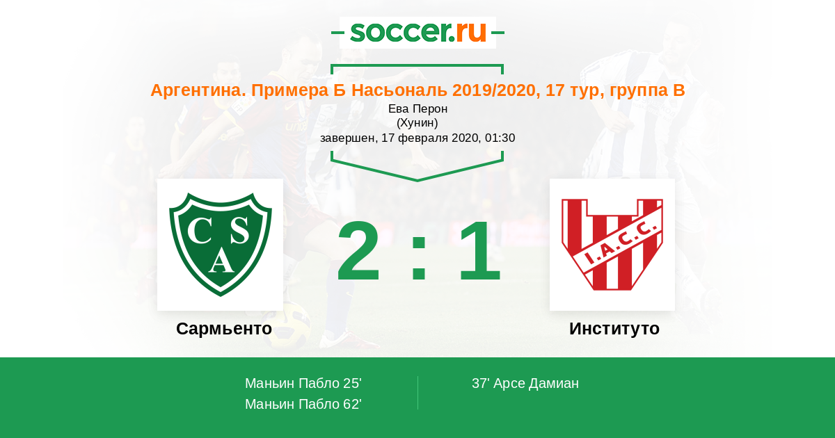 Сармьенто - Институто: обзор матча 17 февраля 2020