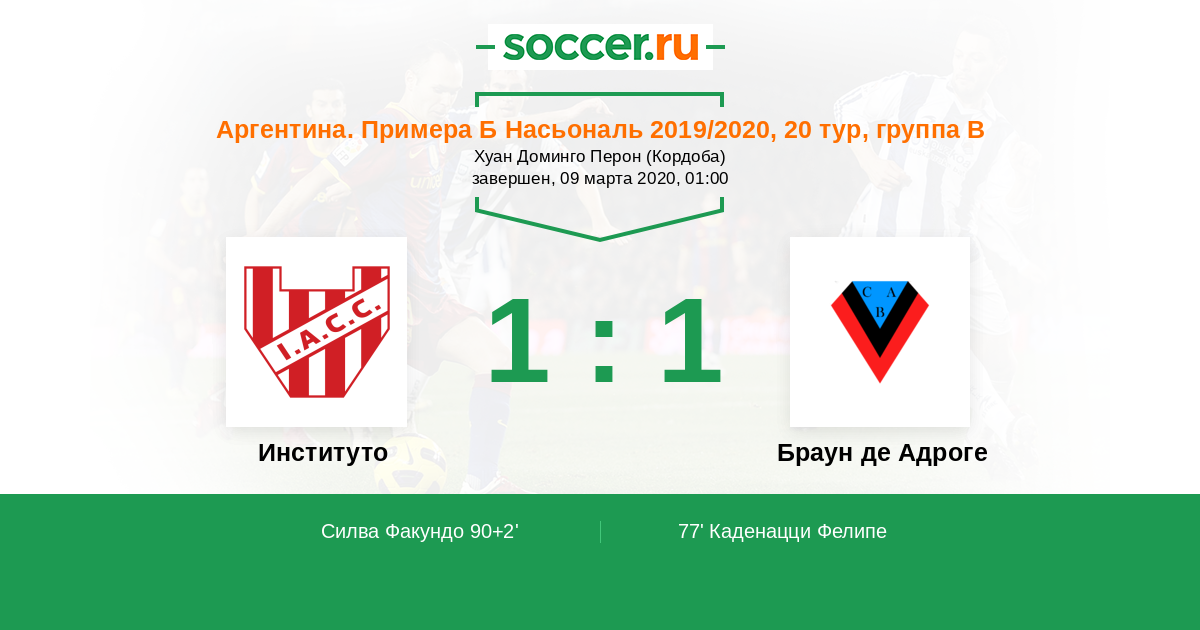 Институто - Браун де Адроге: обзор матча 9 марта 2020