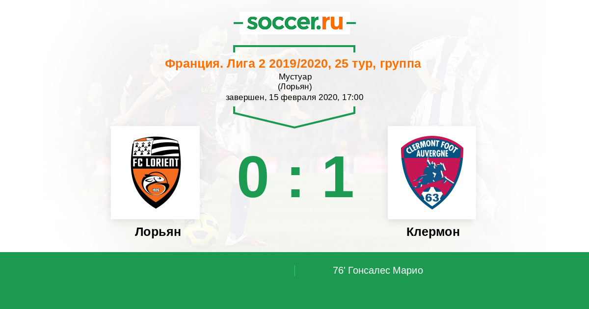 Лорьян - Клермон: обзор матча 15 февраля 2020