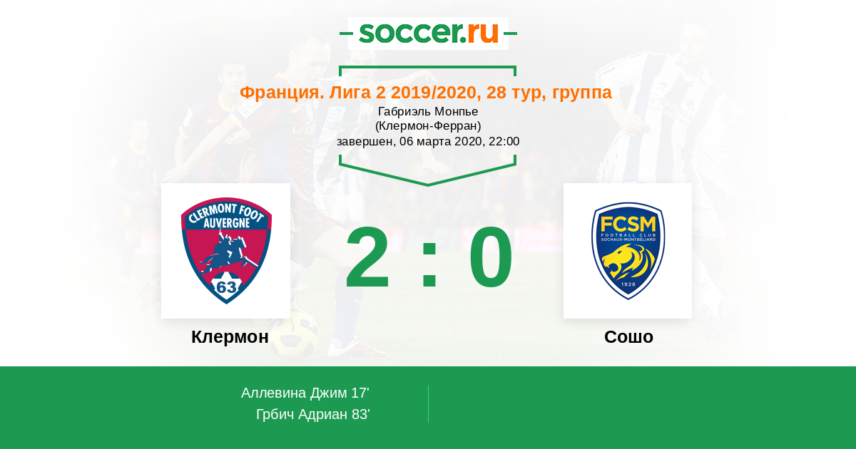 Клермон - Сошо: обзор матча 6 марта 2020