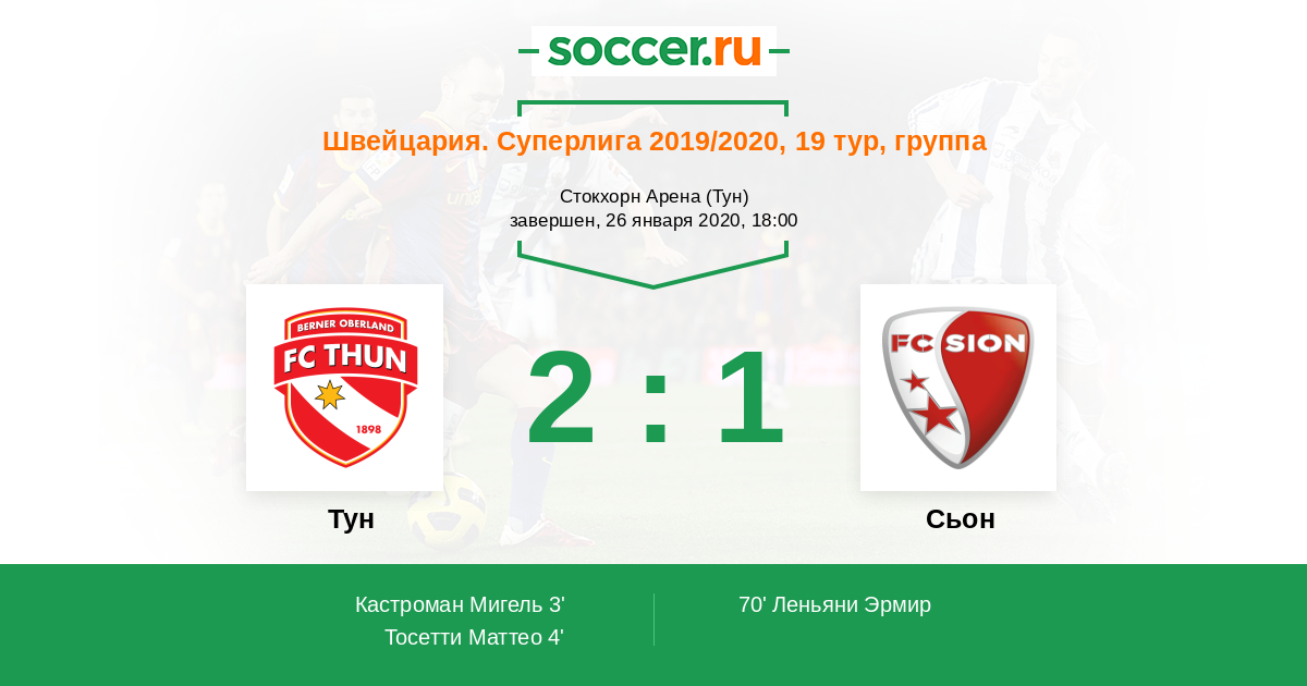 Тун - Сьон: обзор матча 26 января 2020