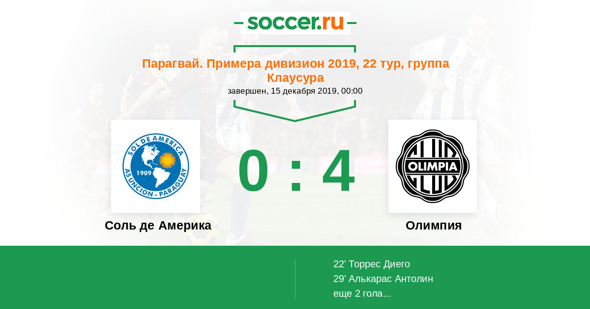 Соль де Америка - Олимпия: обзор матча 15 декабря 2019