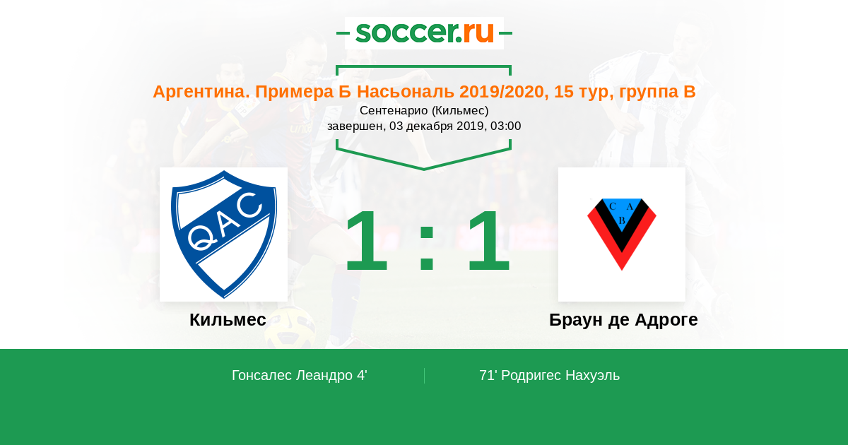 Кильмес - Браун де Адроге: обзор матча 3 декабря 2019