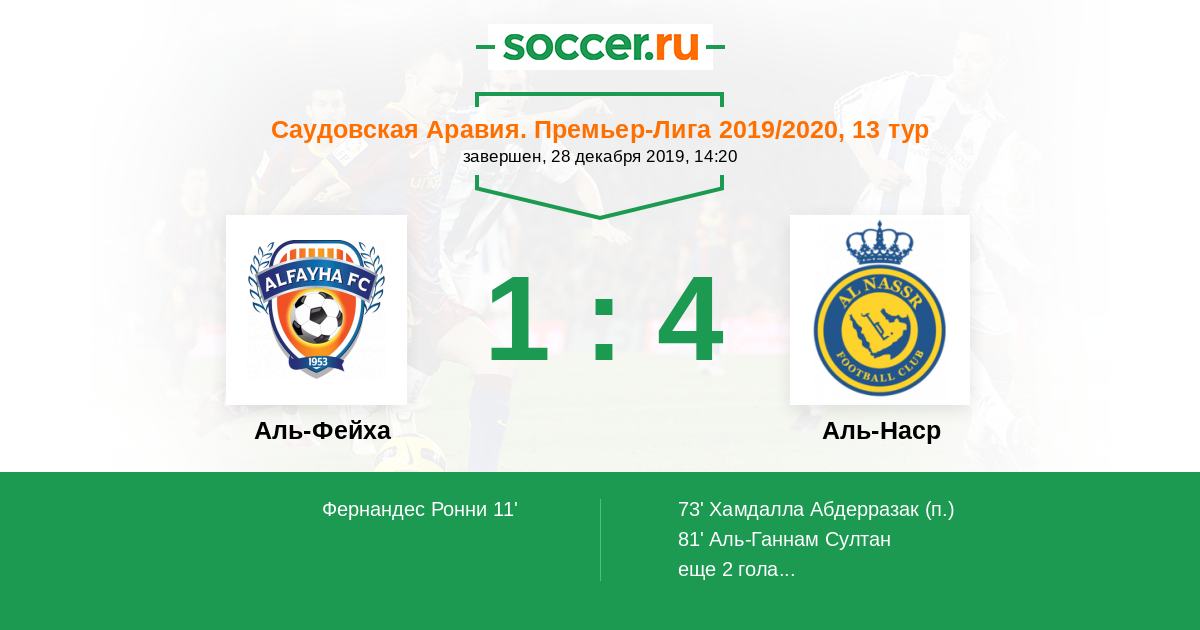 Аль-Фейха - Аль-Наср: обзор матча 28 декабря 2019