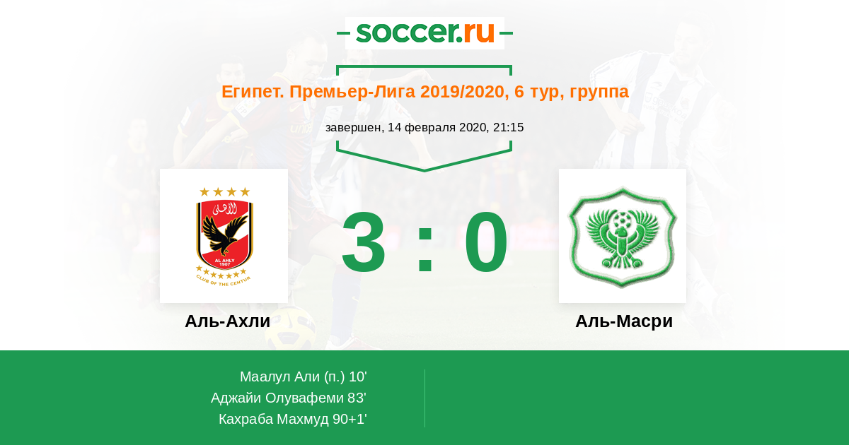 Аль-Ахли - Аль-Масри: обзор матча 14 февраля 2020