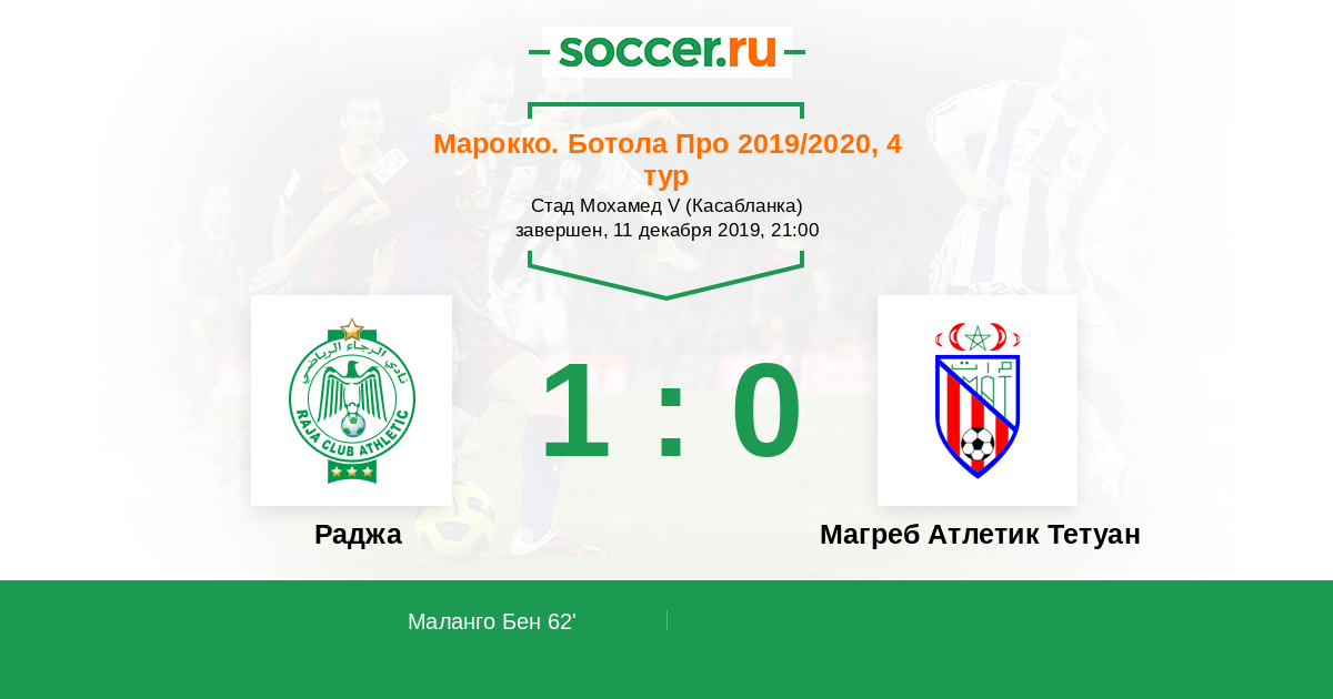 Раджа - Магреб Атлетик Тетуан: обзор матча 11 декабря 2019