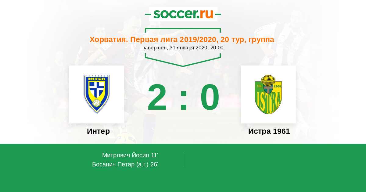 Интер - Истра 1961: обзор матча 31 января 2020