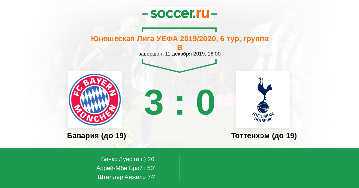 Бавария (до 19) - Тоттенхэм (до 19): обзор матча 11 декабря 2019
