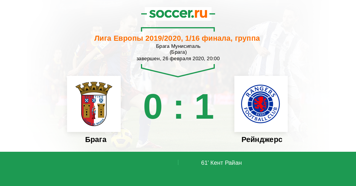 Брага - Рейнджерс: обзор матча 26 февраля 2020