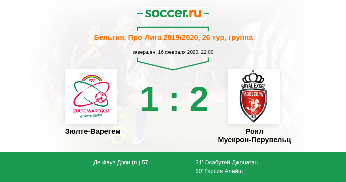 Зюлте-Варегем - Роял Мускрон-Перувельц: обзор матча 16 февраля 2020