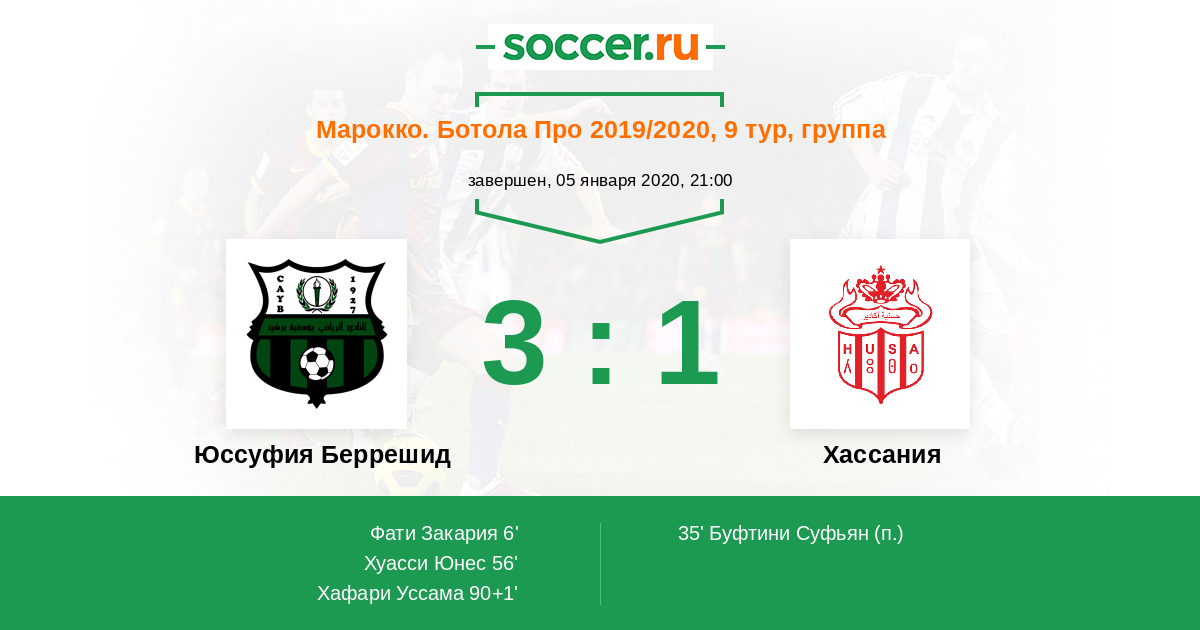 Юссуфия Беррешид - Хассания: обзор матча 5 января 2020