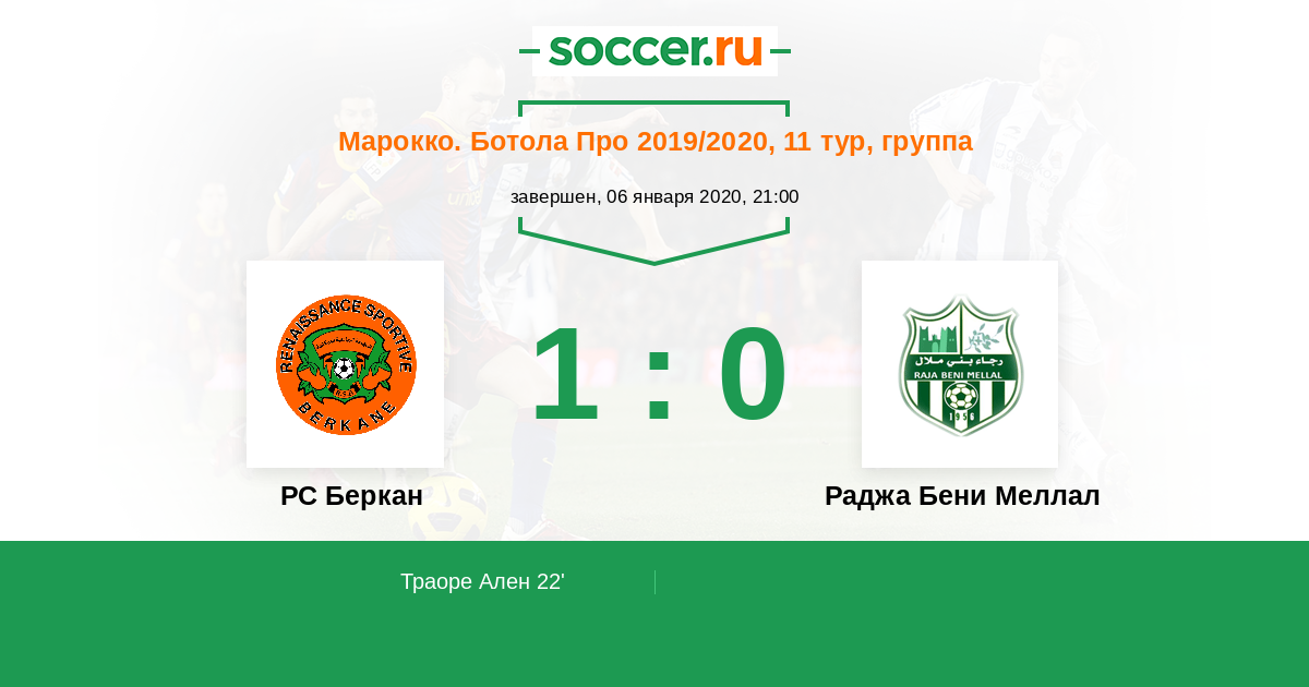 РС Беркан - Раджа Бени Меллал: обзор матча 6 января 2020