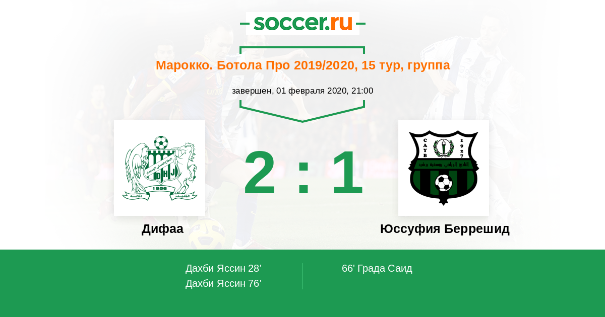 Дифаа - Юссуфия Беррешид: обзор матча 1 февраля 2020
