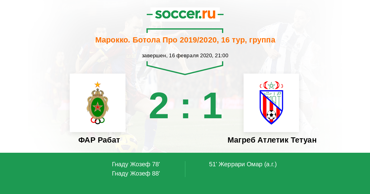 ФАР Рабат - Магреб Атлетик Тетуан: обзор матча 16 февраля 2020