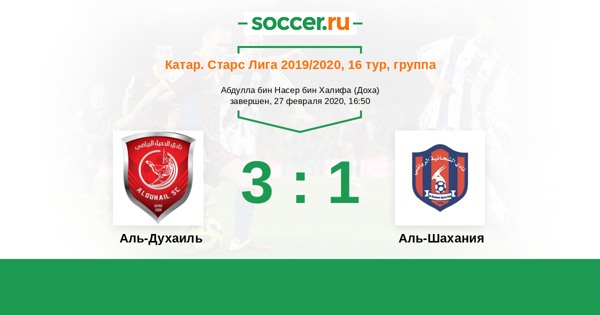 Аль-Духаиль - Аль-Шахания: обзор матча 27 февраля 2020