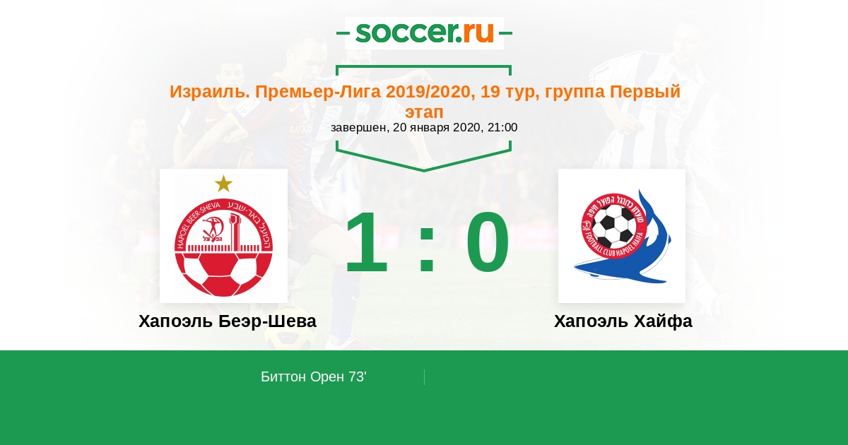 Хапоэль Беэр-Шева - Хапоэль Хайфа: обзор матча 20 января 2020