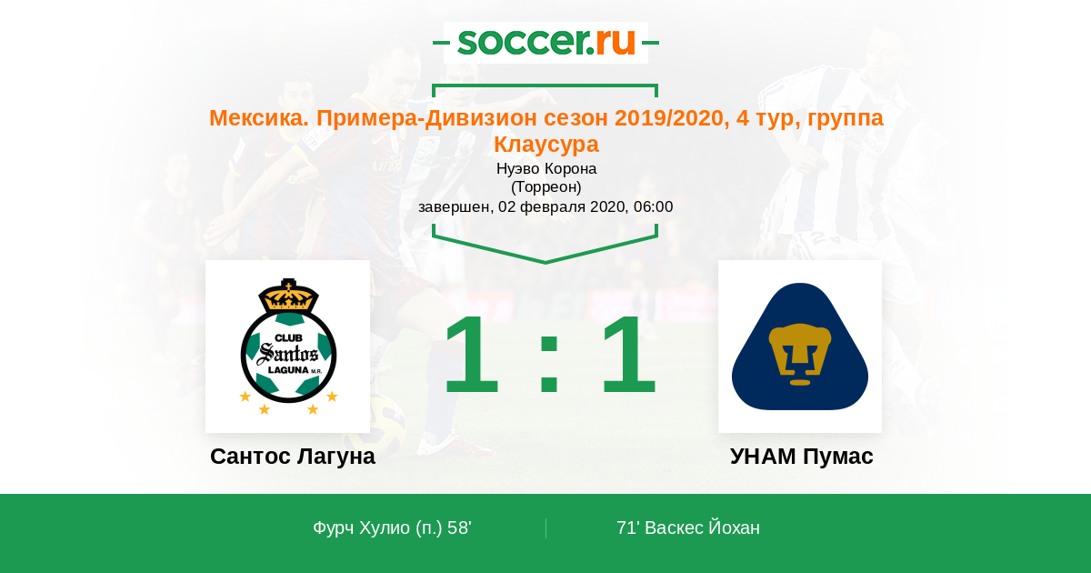 Сантос Лагуна - УНАМ Пумас: обзор матча 2 февраля 2020