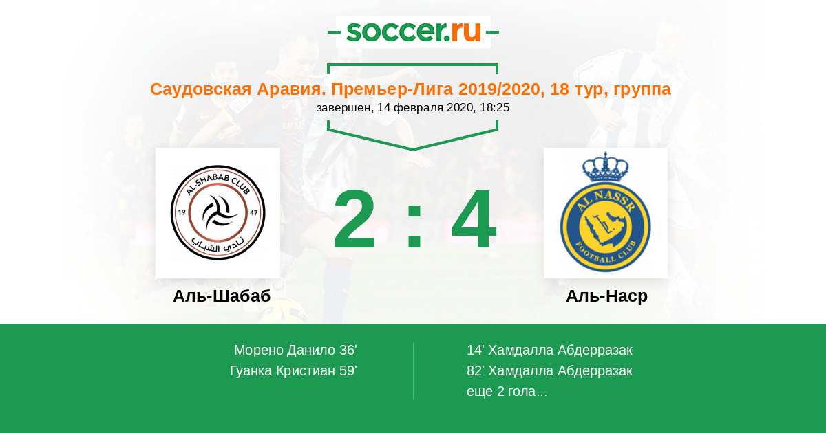 Аль-Шабаб - Аль-Наср: обзор матча 14 февраля 2020