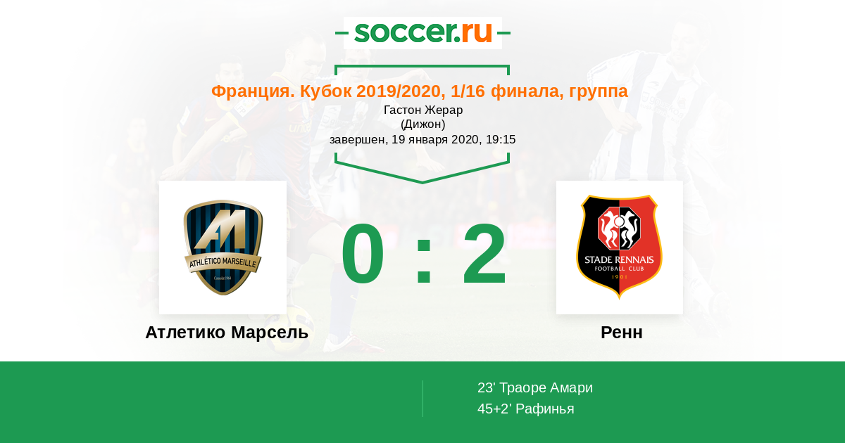 Атлетико Марсель - Ренн: обзор матча 19 января 2020