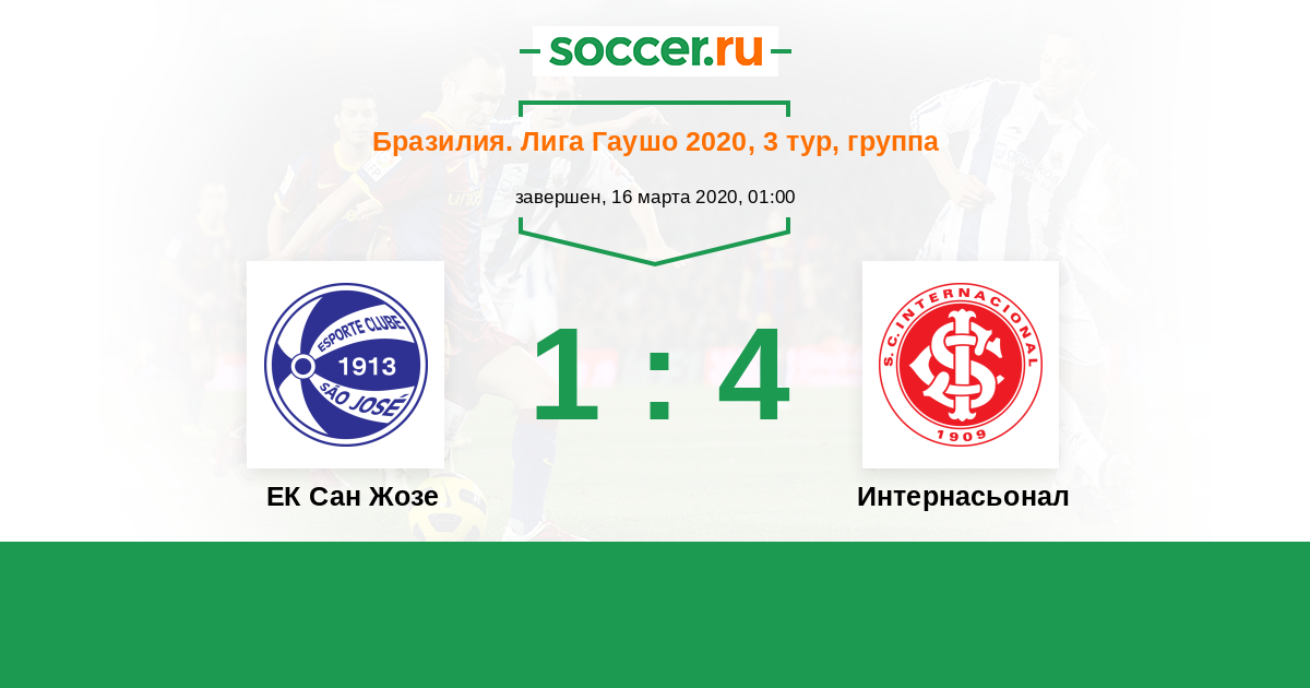 ЕК Сан Жозе - Интернасьонал: обзор матча 16 марта 2020