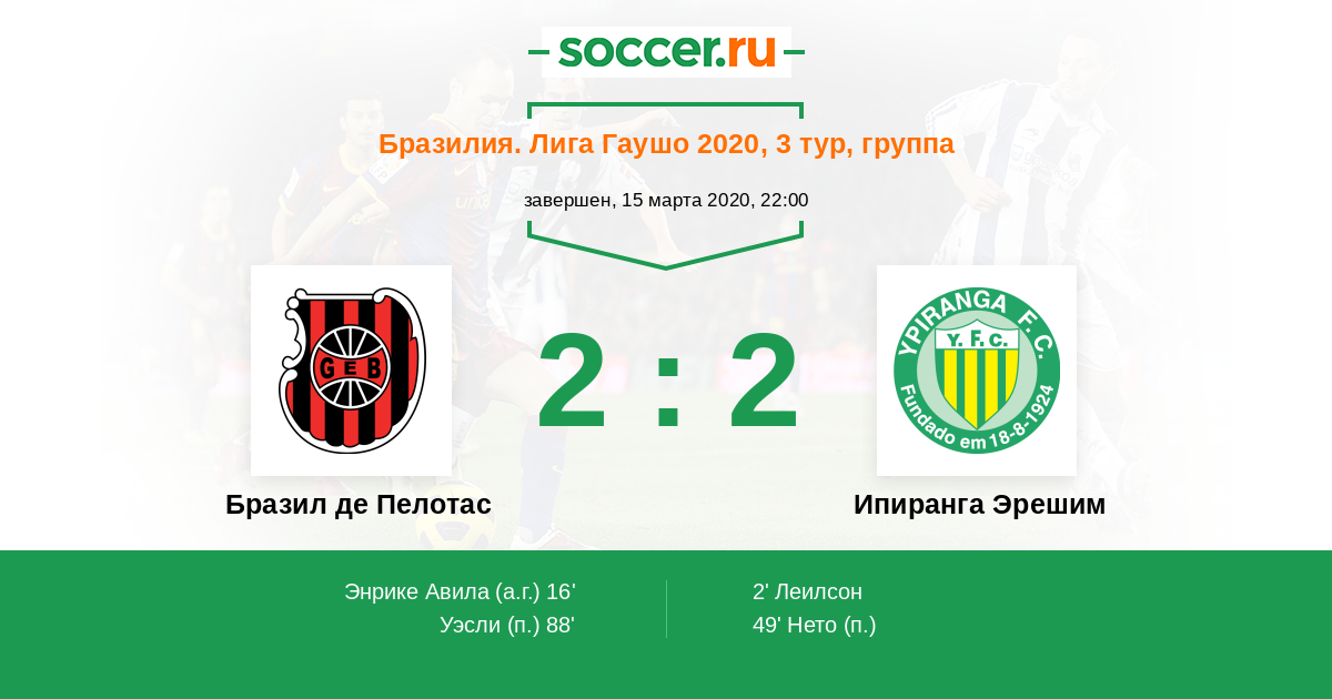 Бразил де Пелотас - Ипиранга Эрешим: обзор матча 15 марта 2020