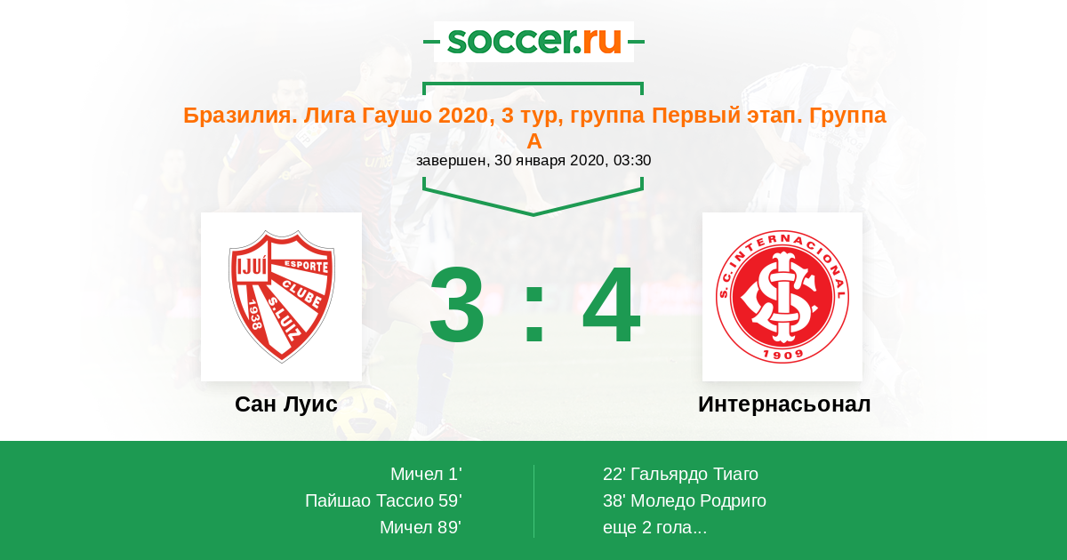 Сан Луис - Интернасьонал: обзор матча 30 января 2020