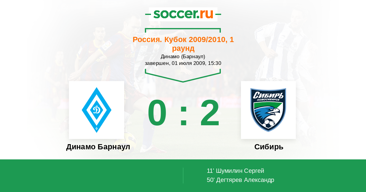 Динамо Барнаул - Сибирь: обзор матча 1 июля 2009