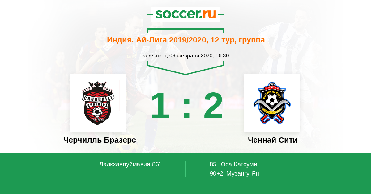 Черчилль Бразерс - Ченнай Сити: обзор матча 9 февраля 2020